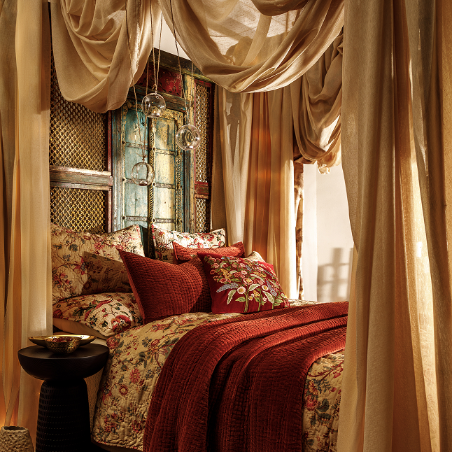 Discover our hand‑embroidered and quilted soft furnishings, crafted in fine cottons and linens with exquisite artisanal details.